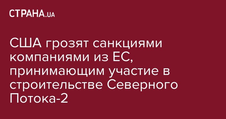Европейские компании, работающие совместно с Россией над строительством газопровода "Северный поток-2" (Nord Stream 2), могут оказаться под санкциями США. Такое заявление сделала зампомощника госсекретаря США по энергетической дипломатии Сандра Удкирк, сообщает Bloomberg.