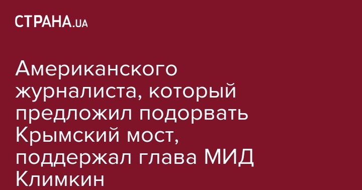 Том Роган, журналист американского  издания Washington Examiner, который на днях предложил Украине подорвать Крымский мост, получил поддержку от министра иностранных дел Украины Павла Климкина.