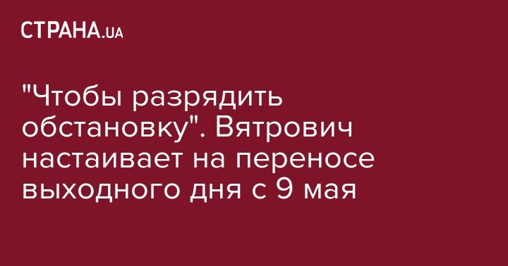 "Чтобы разрядить обстановку". Вятрович настаивает на переносе выходного дня с 9 мая