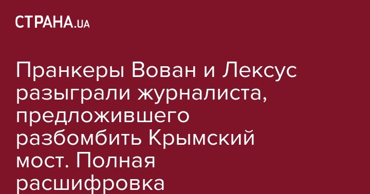Пранкеры Вован и Лексус разыграли журналиста, предложившего разбомбить Крымский мост. Полная расшифровка