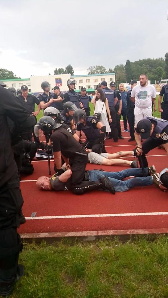 "Когда на 56-й минуте матча они вышли на поле, им начали делать замечания зрители, они начали избивать зрителей... Подошли несколько полицейских, чтобы успокоить эту группу, они отреагировали агрессивно, начали отталкивать. Так что на стадионе было много людей, в том числе детей, полиция решила задержать этих лиц", – заявил представитель полиции области Дмитрий Грищенко.