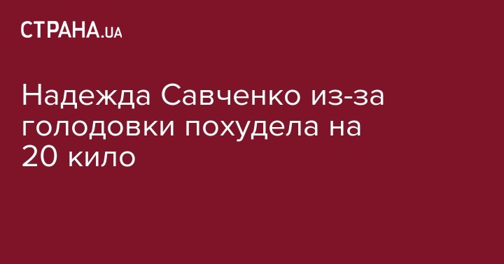 Народный депутат Надежда Савченко (внефракционная) из-за голодовки в СИЗО СБУ похудела на 20 кг. Об этом сообщил ее адвокат Александр Шадрин в эфире Громадського радіо.