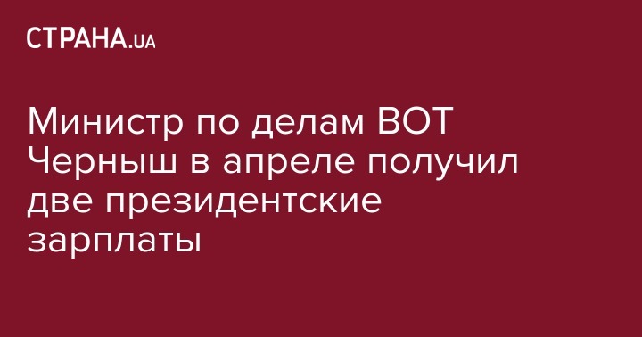 Зарплата министра по вопросам временно оккупированных территорий и внутренне перемещенных лиц Вадима Черныша за апрель составила 52 054 гривны. Для сравнения глава государства за этот же период заработал почти вдвое меньше - 28 тысяч гривен.