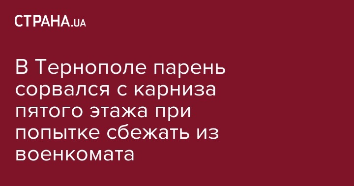 "Предварительно установлено, что призывник Бережанского военкомата, пытаясь самовольно покинуть расположение призывного пункта, предпринял попытку спуститься с пятого на первый этаж здания по карнизу, сорвался и упал на крышу соседнего здания. В результате парень получил травмы различной степени тяжести",- говорится в сообщении в соцсети.