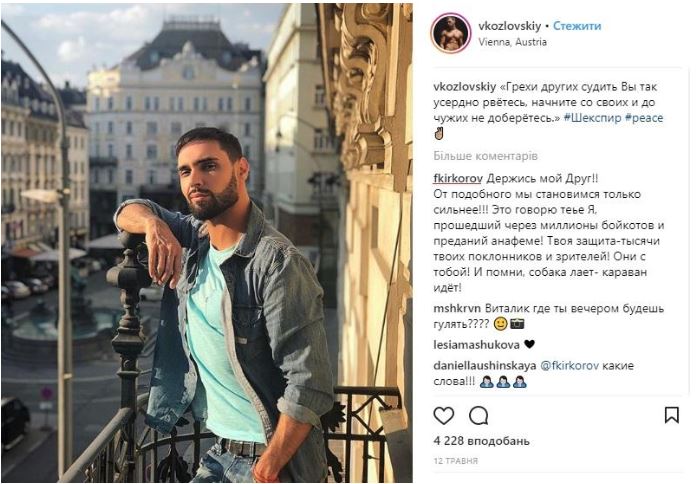 Слова поддержки российский поп-король выразил под постом украинского певца в Instagram, где последний процитировал Шекспира: "Грехи других судить Вы так усердно рветесь, начните со своих и до чужих не доберетесь".