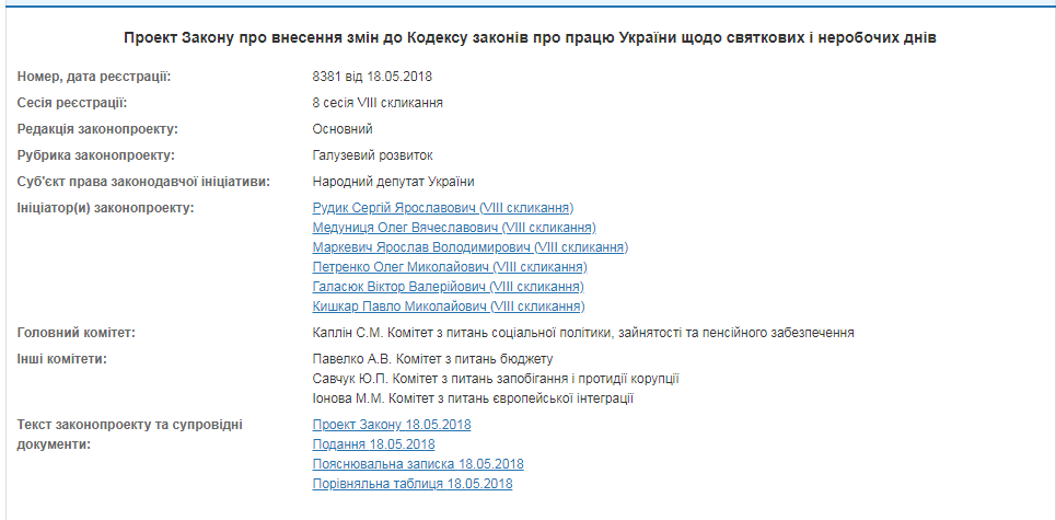 Нардепами-инициаторами данного законопроекта значатся