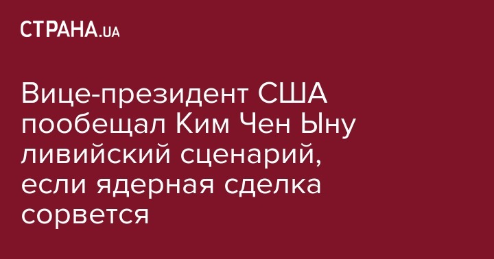 "На прошлой неделе были некоторые разговоры о ливийской модели, - напомнил в связи с этим Пенс. - И президент дал ясно понять, что это кончится только так, как кончилось в Ливии, если Ким Чен Ын не заключит сделку".