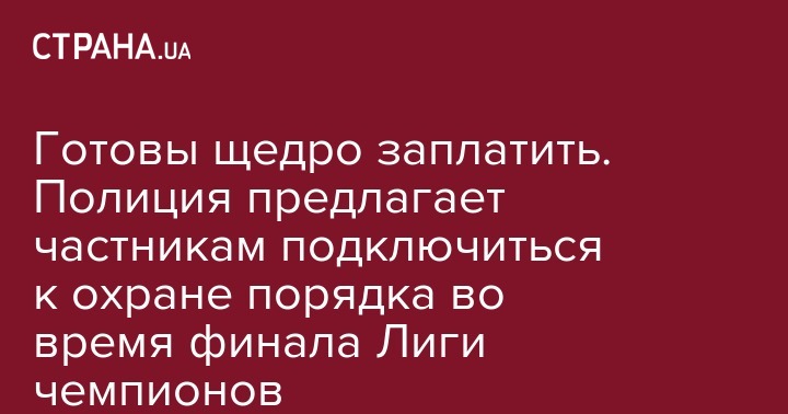 Кроме этого, силовики готовы заплатить частным охранным структурам, если те подключатся к обеспечению безопасности вокруг НСК "Олимпийский" во время финала Лиги чемпионов УЕФА.