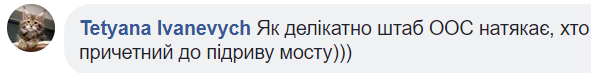 "Как деликатно штаб ООС намекает, кто причастен к подрыву моста", – пишет в комментариях пользователь Татьяна Иваневич.