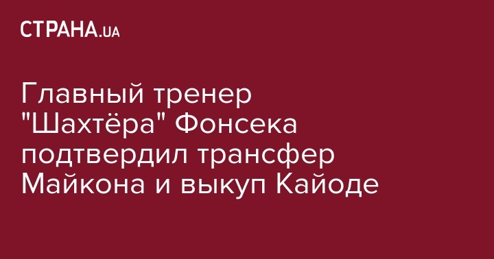 Главный тренер "Шахтера" Паулу Фонсека подтвердил информацию о переходе в состав "горняков" полузащитника "Коринтианса" 20-летнего бразильца Майкона. Также он рассказал о намерении выкупить у "Манчестер Сити" арендованного форварда Оларенваджу Кайоде.