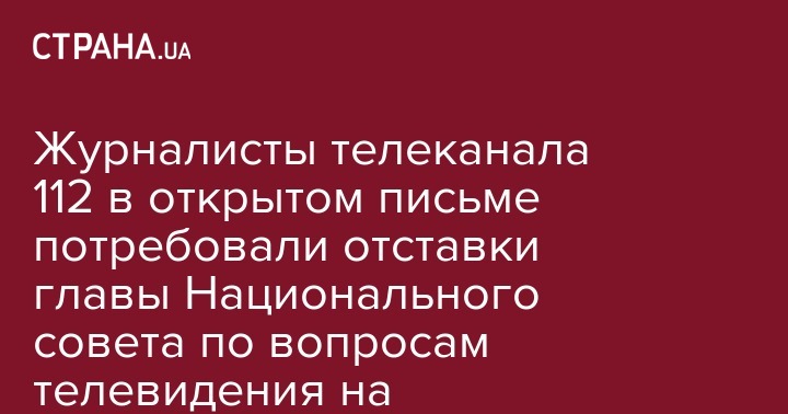 Сотрудники телеканала "112-Украина" опубликовали открытое письмо к главе Национального совета по вопросам телевидения и радиовещания Украины Юрию Артеменко.
