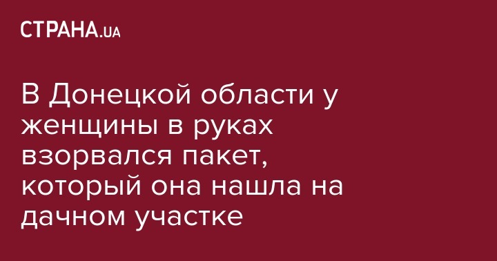 В Донецкой области в Мирнограде (бывший Димитров) 54-летняя женщина на своем дачном участке нашла пакет, который взорвался у нее в руках.