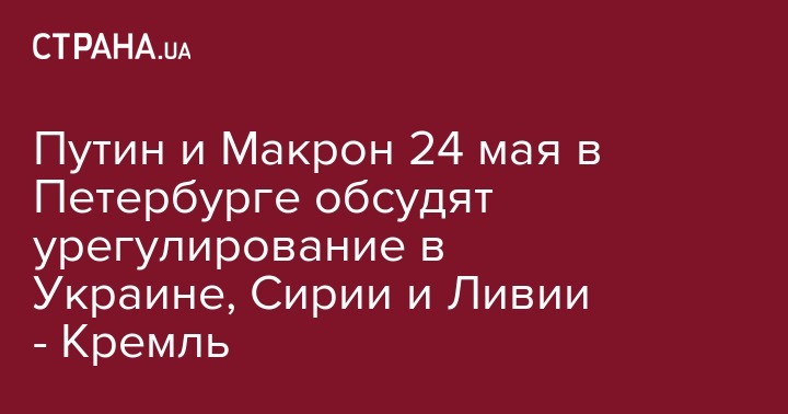 Президент России Владимир Путин и лидер Франции Эмманюэль Макрон 24 мая в Санкт-Петербурге обсудят ситуацию на юго-востоке Украины, перспективы разрешения кризисов в Сирии и Ливии, сообщил помощник главы государства Юрий Ушаков, сообщает российский "Интерфакс".