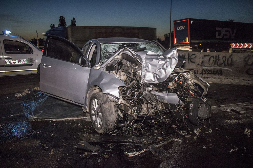 Под Киевом Volkswagen врезался в бетонное заграждение, пассажир погиб на месте. Фото. Видео