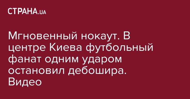 "Драка в самом центре Киева и жесткий нокаут от футбольного фаната в итоге", - говорится в сообщении.