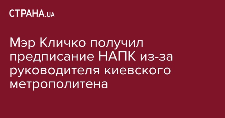 Мэр Кличко получил предписание НАПК из-за руководителя киевского метрополитена