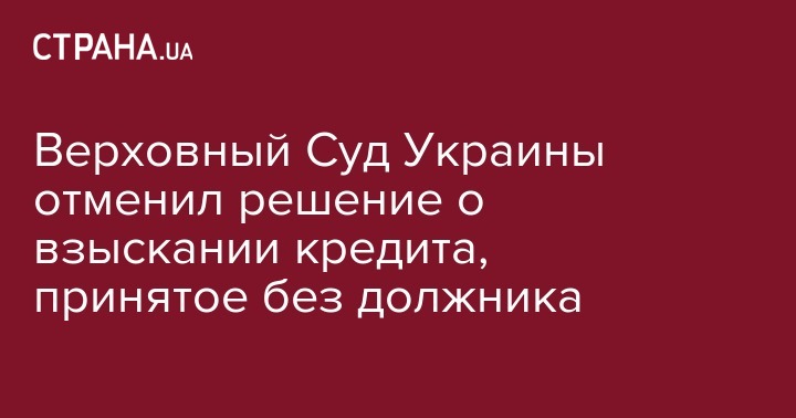 Верховный Суд Украины отменил решение о взыскании кредита, принятое без должника