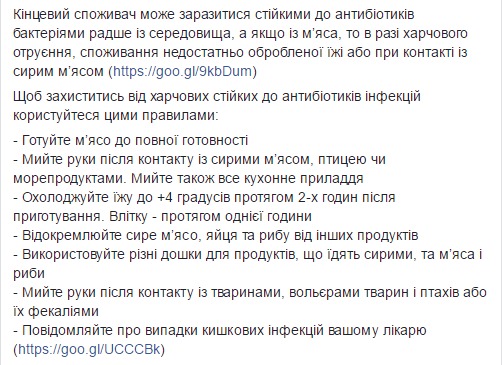 Также Супрун дала советы, как защититься от пищевых устойчивых к антибиотикам инфекций: