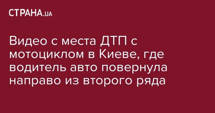 Видео с места ДТП с мотоциклом в Киеве, где водитель авто повернула направо из второго ряда
