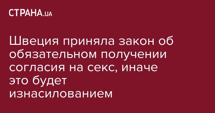 Шведский риксдаг (парламент) принял закон, который обязывает получать однозначное согласие на секс. Без такого согласия половой акт будет считаться изнасилованием.