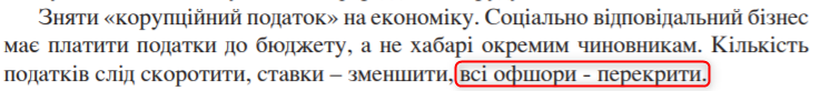 Любопытным пунктом программы Петра Порошенко стало перекрытие офшоров. Это было записано официально: "Сократить количество налогов, ставки – уменьшить, а все офшоры – перекрыть".