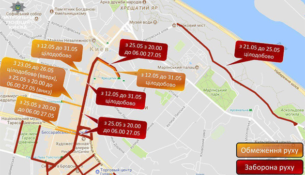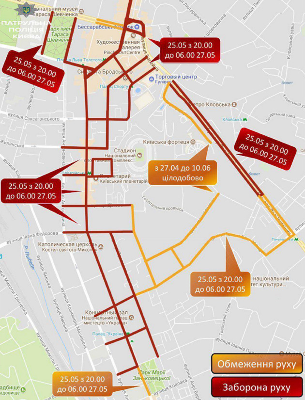 14:12 - В Киеве из-за матча финала Лиги чемпионов перекроют движение на некоторых столичных улицах. Об этом сказано на Twitter странице МВД.