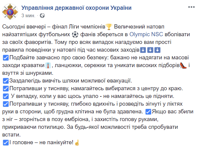 "Руководство Национальной полиции Украины держит на контроле все сообщения, связанные с болельщиками из разных стран, прибывших на проведение финальных матчей Лиги чемпионов УЕФА", - подчеркивается в сообщении.