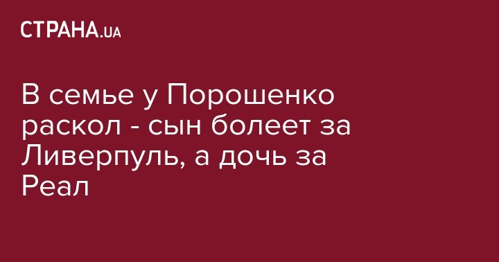 "Когда меня спрашивают, за кого я болею – "Реал" или "Ливерпуль", я говорю: я поддерживаю оба клуба. Мой сын Михаил, который в прошлом году играл за детскую команду "Динамо" Киев - страстный болельщик "Ливерпуля". У него все в цветах этого клуба. А вот моя дочь Евгения - четко "Реал". То есть мой дом - точно поддерживает оба клуба", сказал Порошенко.