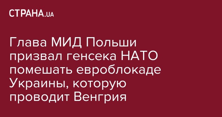 Глава МИД Польши призвал генсека НАТО помешать евроблокаде Украины, которую проводит Венгрия