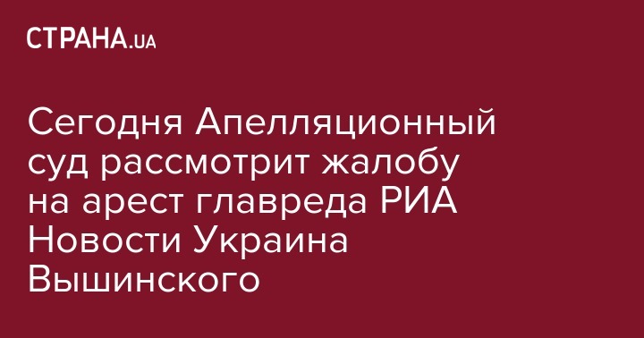 Сегодня Апелляционный суд рассмотрит жалобу на арест главреда РИА Новости Украина Вышинского