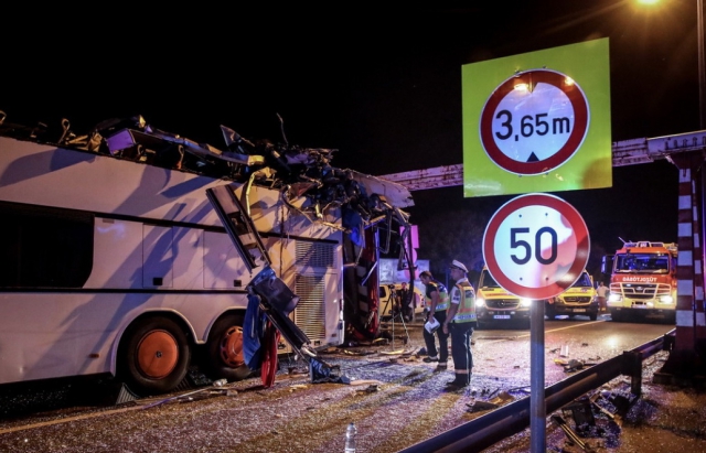 Автобус Setra из Украины направлялся в аэропорт Ферихедь и на скорости въехал в 3,5 метровый ограничитель высоты. В результате столкновения практически весь второй этаж, где находилось два десятка пассажиров было снесено.