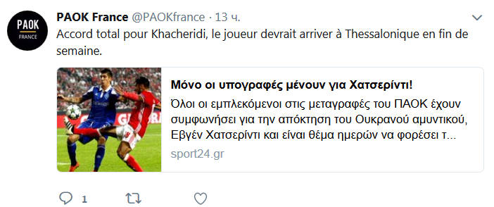 На представлении новичка будет присутствовать президент клуба Иван Саввиди. Напомним, что Иван Саввиди хотел купить Хачериди еще зимой, но "Динамо" выдвинуло тогда неприемлемые для греков финансовые условия. Теперь же защитник достанется грекам абсолютно бесплатно как свободный агент.
