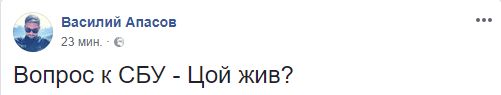 Журналист Василий Апасов интересуется: " Вопрос к СБУ - Цой жив?"
