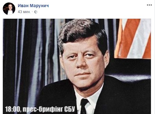 Блогер Иван Марунич опубликовал фото Джона Кеннеди с подписью "Брифинг СБУ".