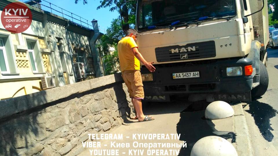 Около 15.00 четверга, 31 мая, в Киеве Владимирском спуске грузовик MAN, вылетел с дороги на тротуар.