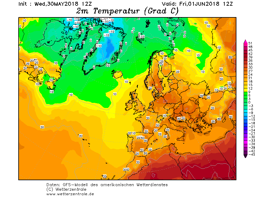 В пятницу, 1 июня температура воздуха в Украине снизится до + 19 + 24 С. В западных областях удержится теплая погода, +23...+27 градусов. Повсюду будет преобладать сухая воздушная масса, лишь в западной части вечером пройдет кратковременный дождь с грозой.