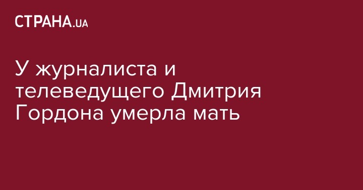 У журналиста и телеведущего Дмитрия Гордона умерла мать