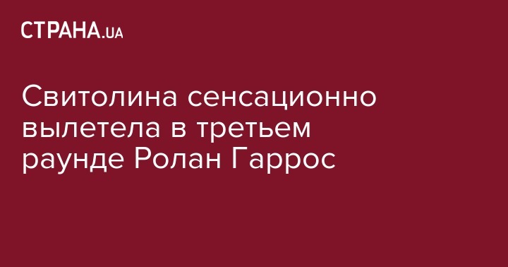 Свитолина сенсационно вылетела в третьем раунде Ролан Гаррос, она уступила 33-й ракетке мира, не повторив прошлогоднего результата, когда она дошла до четвертьфинала, передает Спортарена.