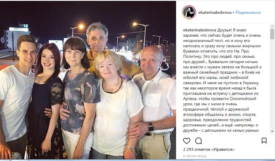 Российскую фигуристку Екатерину Боброву не пустили в Киев на юбилей к матери мужа (свекрови).