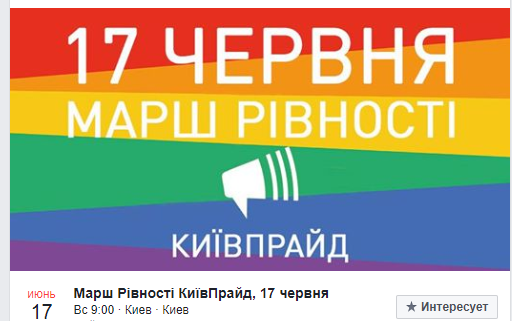 "17 июня 2018 года в рамках КиевПрайд-2018 состоится ежегодный Марш Равенства", - сказано в сообщении организации КиевПрайд