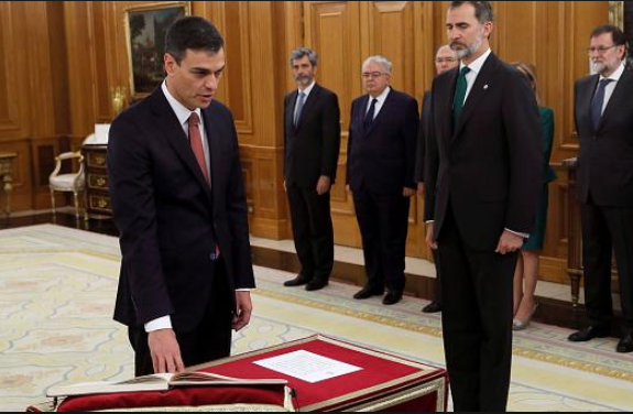 Во время присяги Педро Санчес пообещал исполнять свои обязанности с честью, оставаться лояльным королю и защищать конституцию страны.