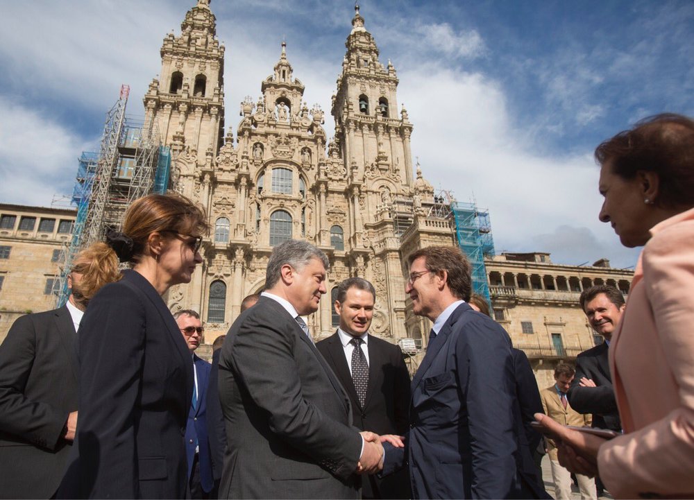 Отмечается, что Порошенко и Фейхоо отметили увеличение количества украинцев-паломников, которые ежегодно посещают Сантьяго-де-Компостела и проходят по пути Святого Якова.
