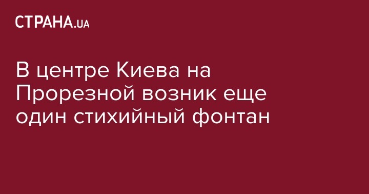 В центре столицы, по улице Прорезной случился порыв водопроводной трубы. Инцидент произошел около 17:00 на перекрестке с ул.Пушкинской. Об этом сообщают очевидцы в Twitter. В результате порыва трубы образовался фонтан воды, высотой до 10 метров.