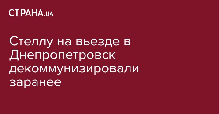 Стеллу на вьезде в Днепропетровск декоммунизировали заранее