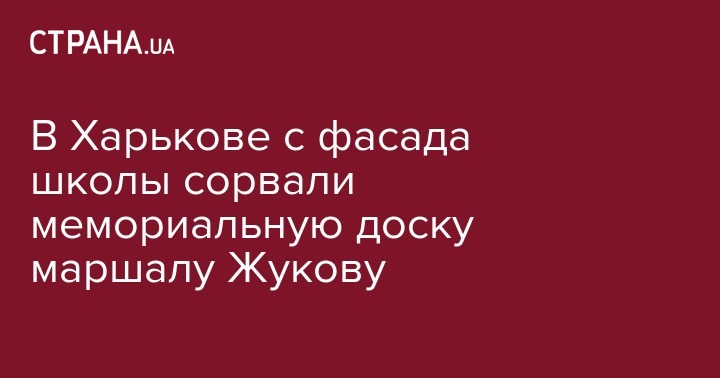 В Харькове неизвестные украли мемориальную доску маршалу Георгию Жукову, которая была установлена на фасаде школы №127. Об этом сообщил руководитель организации "Свитанок" Вадим Поздняков на своей странице в Facebook.