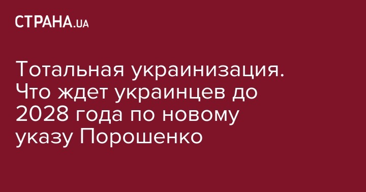 Согласно указу президента Петра Порошенко о десятилетии украинского языка, Кабмину поручено за 2 месяца разработать государственную целевую программу на 2018 - 2028 годы по развитию и функционированию украинского языка как государственного. Фактическую украинизацию планируется внедрить во всех сферах общественной жизни.