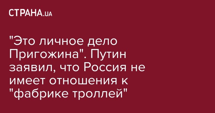 На вопрос журналиста о том, что Пригожин, которого США обвиняют в попытках повлиять на выборы  с помощью так называемого агентства Internet Research Agency, известного как "фабрика троллей", поддерживает тесные отношения с российским руководством и его называют "поваром Путина", президент России заявил, что нужно отделять деятельность государства и ее граждан.