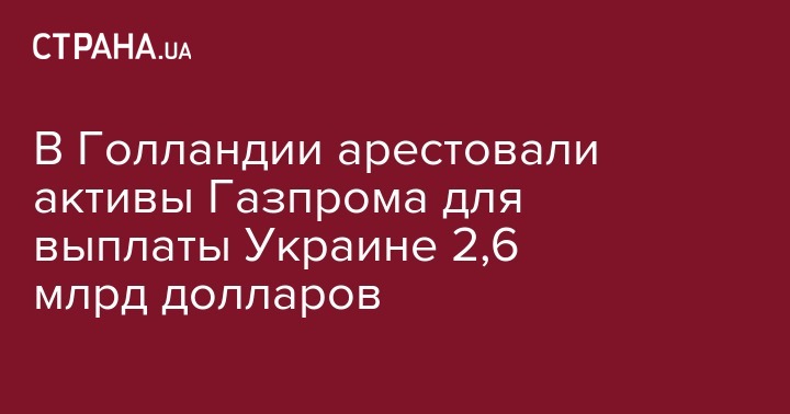 Голландские активы ПАО "Газпром" арестованы для выплаты НАК "Нафтогаз" 2,6 млрд долларов по решению Стокгольмского арбитража.