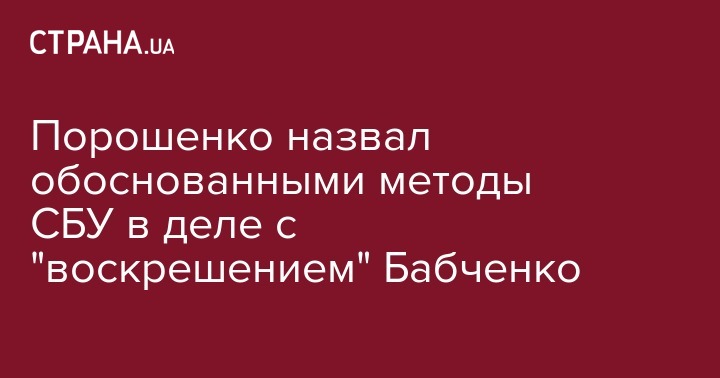 Президент Петр Порошенко считает обоснованными методы, использованные в деле Аркадия Бабаченко Службой безопасности Украины, которая устроила инсценировку убийства журналиста для "для защиты свободы слова".