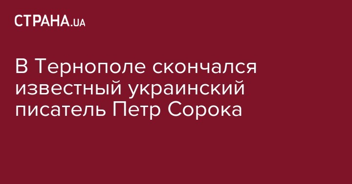 "Друзья, печальная весть. Только что звонила жена поэта и писателя Петра Ивановича Сороки. Петра Ивановича больше нет. Панихида состоится сегодня в 20:00 в его родном селе Петрики", - говорится в сообщении.